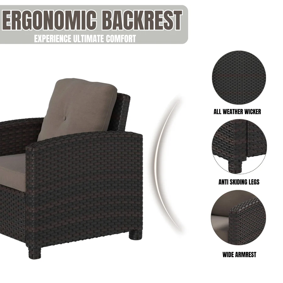 - Low Maintenance & Easy to Clean : Wipe-clean wicker and zippered cushion covers allow for quick and hassle-free maintenance, keeping the set fresh and inviting throughout the seasons.
