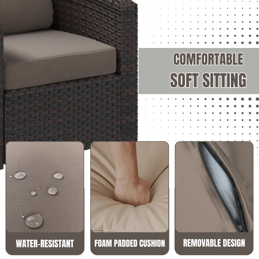 - All-Weather HDPE Wicker Construction : Crafted from high-density polyethylene (HDPE) wicker, this patio set resists fading, cracking, and UV damage, making it perfect for year-round outdoor use.