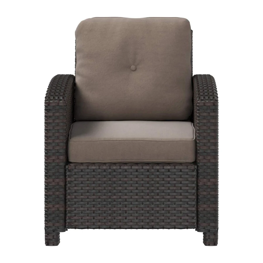 - Water & Fade-Resistant Cushions : Comes with plush coffee brown cushions featuring water-repellent, UV-resistant fabric that resists fading and mildew, ensuring comfort and elegance even in wet or sunny environments.