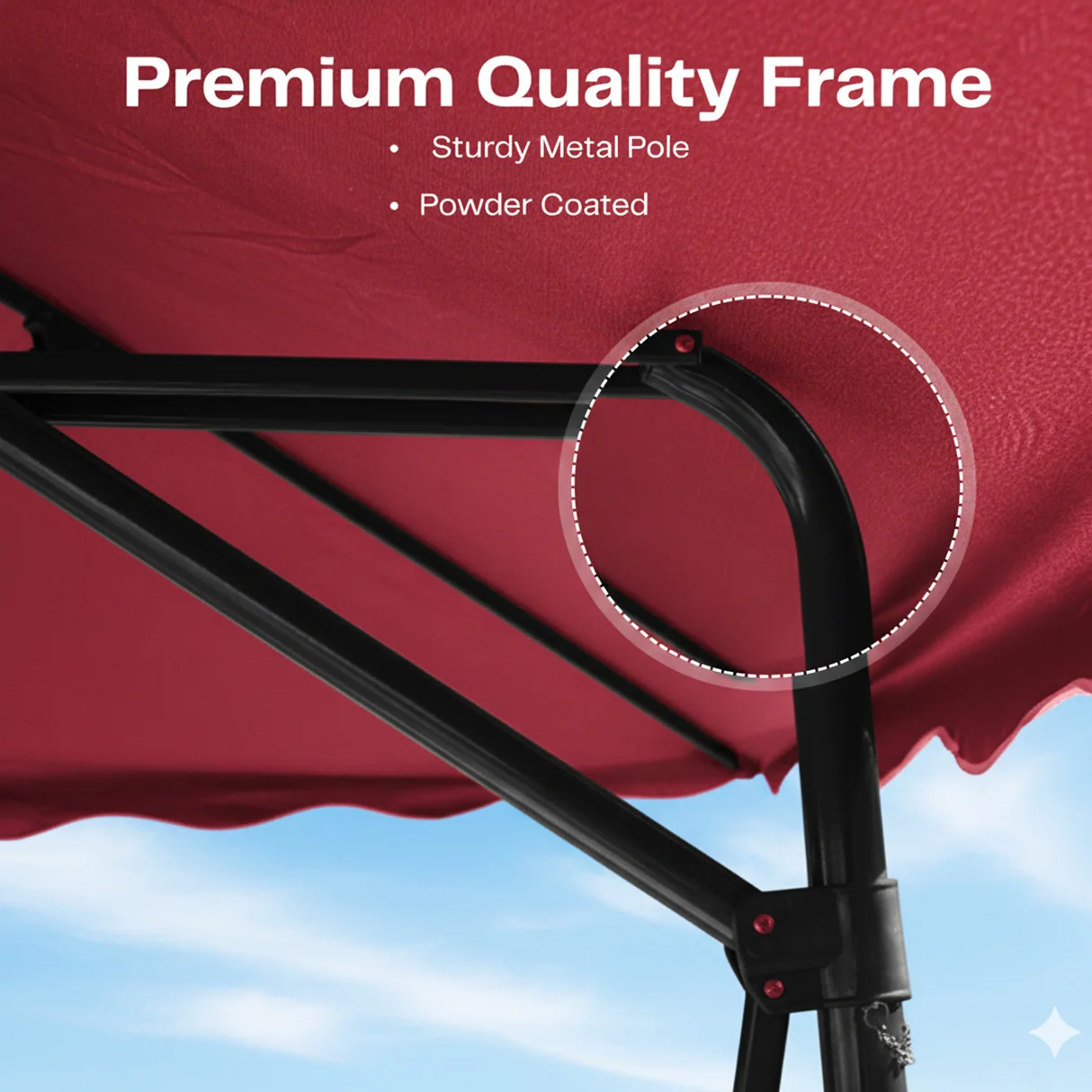 Rust-Resistant Powder-Coated Metal Frame : Built with a durable, weatherproof metal pole and ribs coated with rust-resistant powder finish designed to withstand seasonal outdoor exposure.