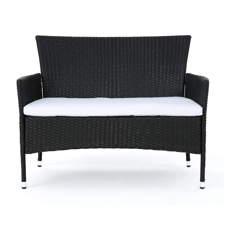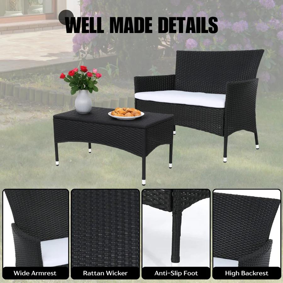 Upgrade your outdoor relaxation space with this stylish and durable 2-Piece Garden Patio Conversation Set. Crafted from premium HDPE rattan, it combines contemporary elegance with long-lasting strength. Whether placed on your balcony, terrace, lawn, poolside, or front porch, this set is built to handle all weather conditions while maintaining its beauty and structure. The included loveseat sofa offers ergonomic comfort with soft, supportive cushions in classic black, while the matching coffee table adds function and flair with its wicker top great for entertaining or simply unwinding outdoors. Designed for compact spaces without sacrificing style, the black & white contrast adds a modern edge to your exterior décor. From sunny mornings to breezy evenings, this set is your new go-to for comfort, durability, and timeless charm.