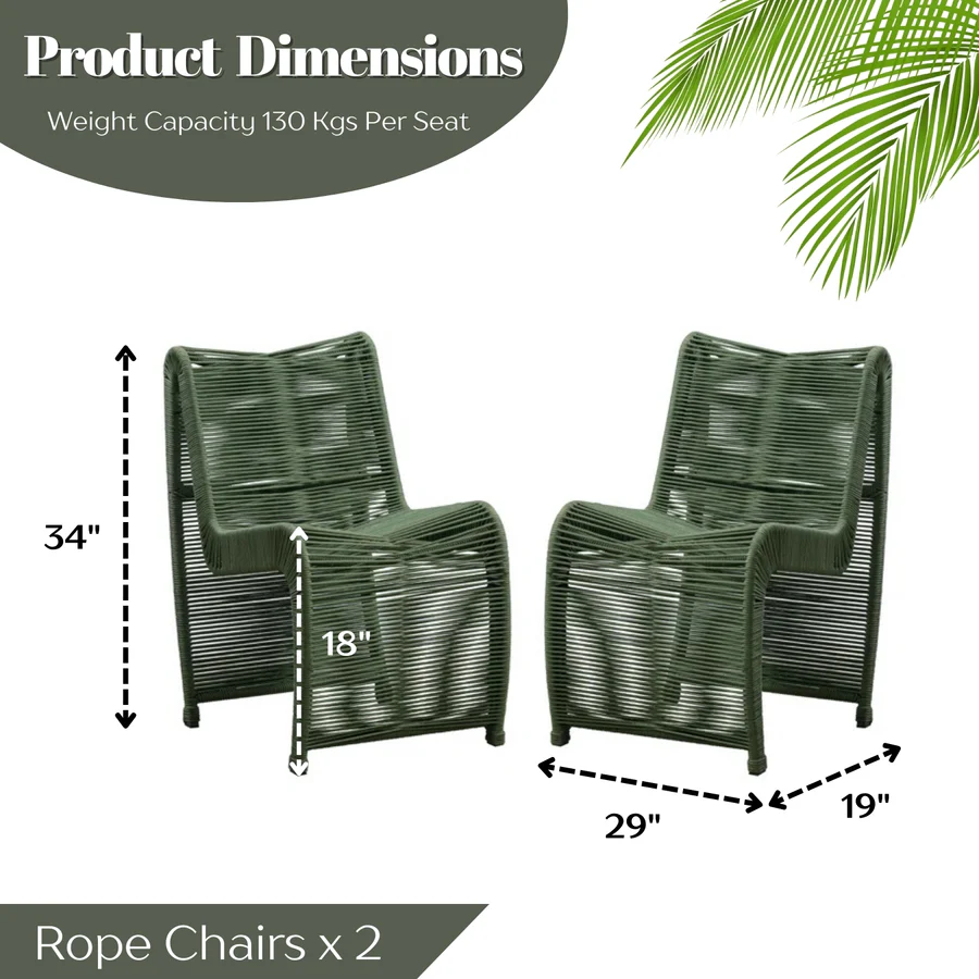 - Weather-Resistant Rope Weaving : Crafted with UV-resistant and quick-drying rope, these chairs withstand sun, rain, and moisture without fading, sagging, or fraying.