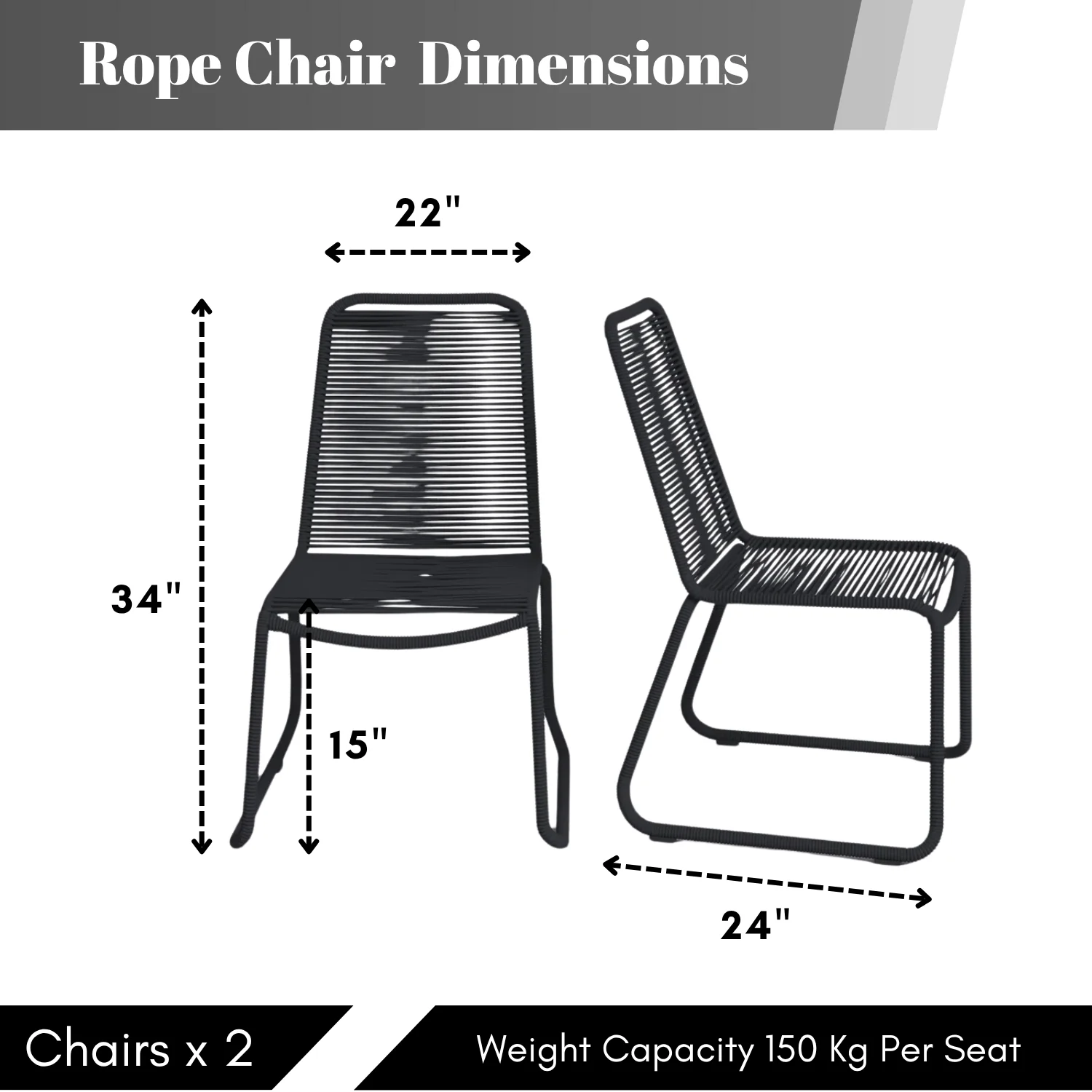Elevate your outdoor dining experience with these stylish rope dining chairs featuring plush cushions for unmatched comfort. Expertly crafted with a powder-coated metal frame and handwoven weather-resistant rope, these chairs are built to withstand the elements while maintaining their elegant appeal. The breathable rope design ensures proper airflow, keeping you cool during warm days. Perfect for gardens, decks, lawns, and poolside settings, these chairs blend contemporary charm with durable performance. Their lightweight yet sturdy construction allows for easy mobility without compromising stability, making them a versatile addition to any outdoor space.