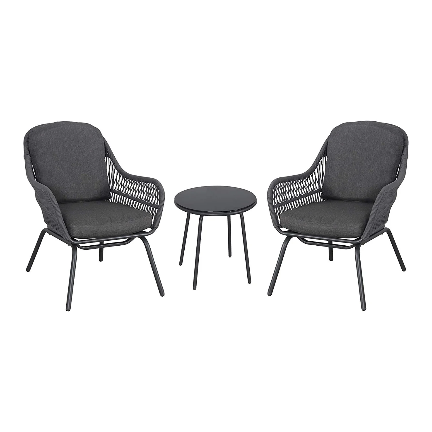 Upgrade your backyard, garden, or balcony with the 3 Piece Outdoor Conversation Set featuring Handwoven Rope Chairs and Waterproof Cushions in Elegant Grey. Designed to combine contemporary style with everyday functionality, this set is your go-to choice for creating a cozy outdoor lounge space. The two beautifully handwoven rope chairs offer a breathable, flexible seat with a unique texture and modern appeal. Paired with thick, waterproof grey cushions, they provide exceptional comfort and support, whether you’re enjoying a morning cup of coffee or an evening chat with friends. The cushions are removable and easy to clean perfect for hassle-free maintenance. Crafted with a powder-coated metal frame, this set is built to last, resisting rust, corrosion, and outdoor wear.