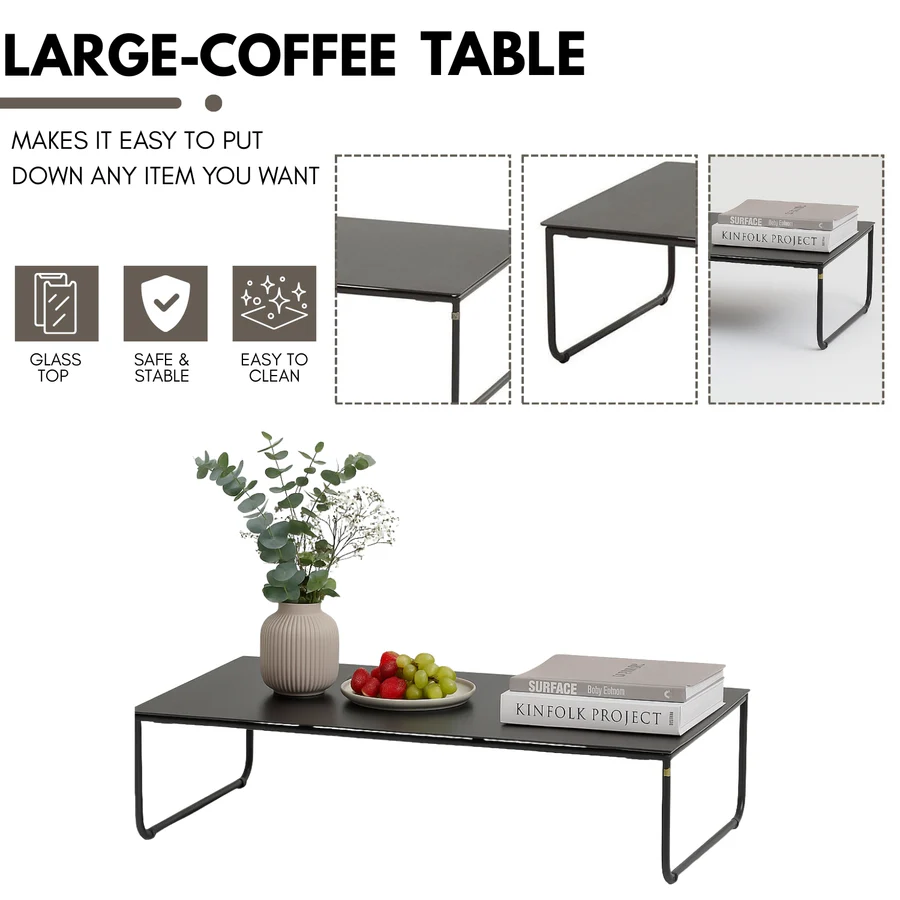 - Glass-Top Coffee Table : Glass top provides a stable, scratch-resistant surface. Easy to clean and ideal for serving drinks, snacks, or displaying decor.