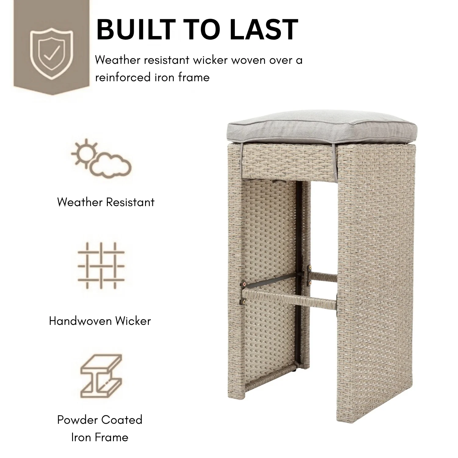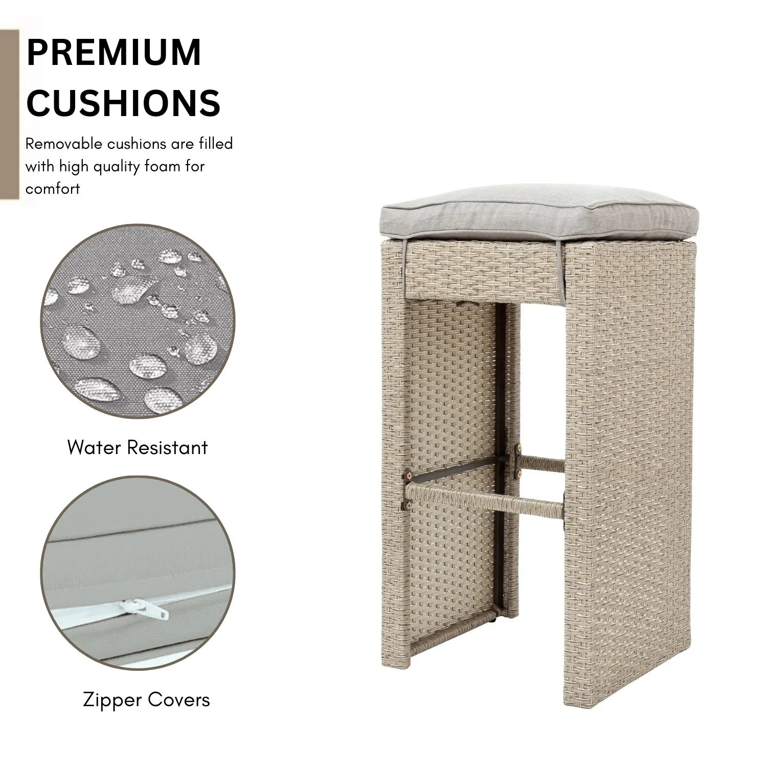 - Comfortable Cushioned Stools : Each bar stool includes a padded, water-resistant cushion for enhanced seating comfort.