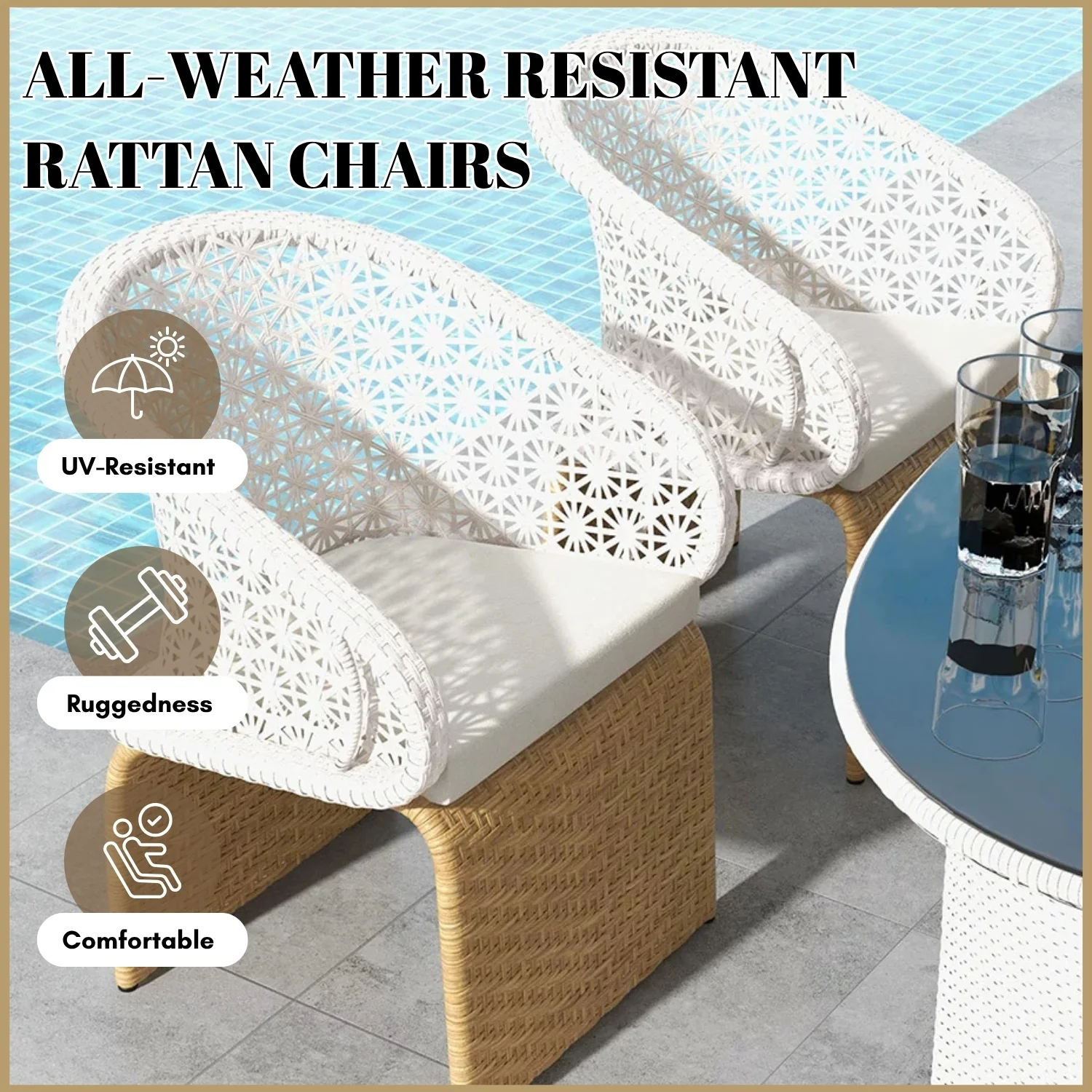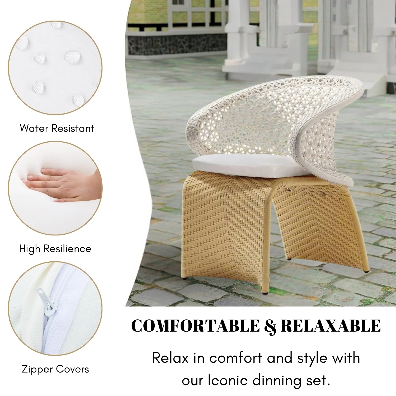 • All-Weather Wicker Construction : Crafted with high-quality handwoven HDPE rattan wicker, this outdoor dining set is built to withstand all weather conditions, ensuring long-lasting durability and resistance to fading, cracking, and UV exposure.