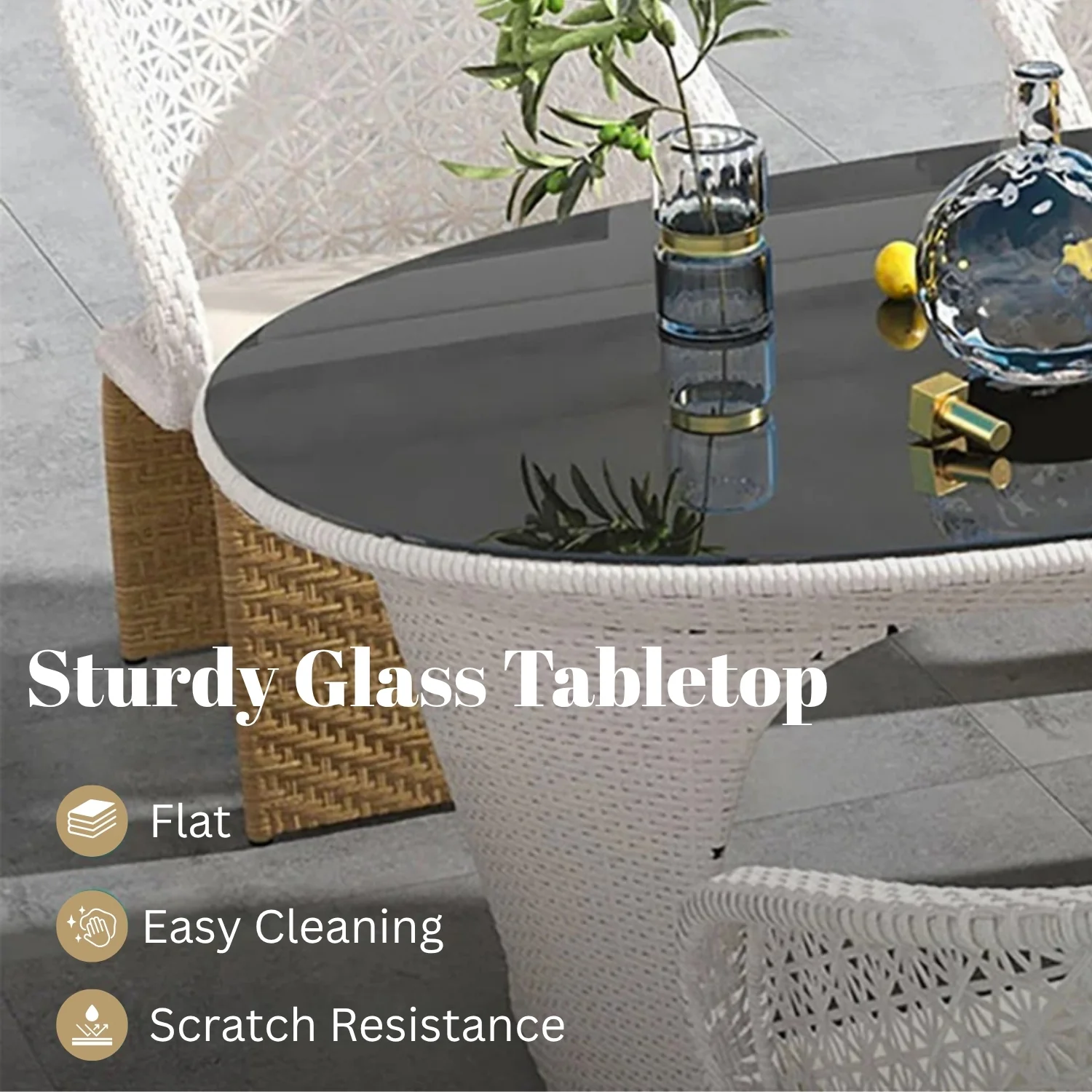 • Double Tone Armchairs for Stylish Comfort : Includes 6 ergonomically designed armchairs with elegant dual-tone wicker detailing and thick padded seat cushions for ultimate comfort and modern outdoor charm.