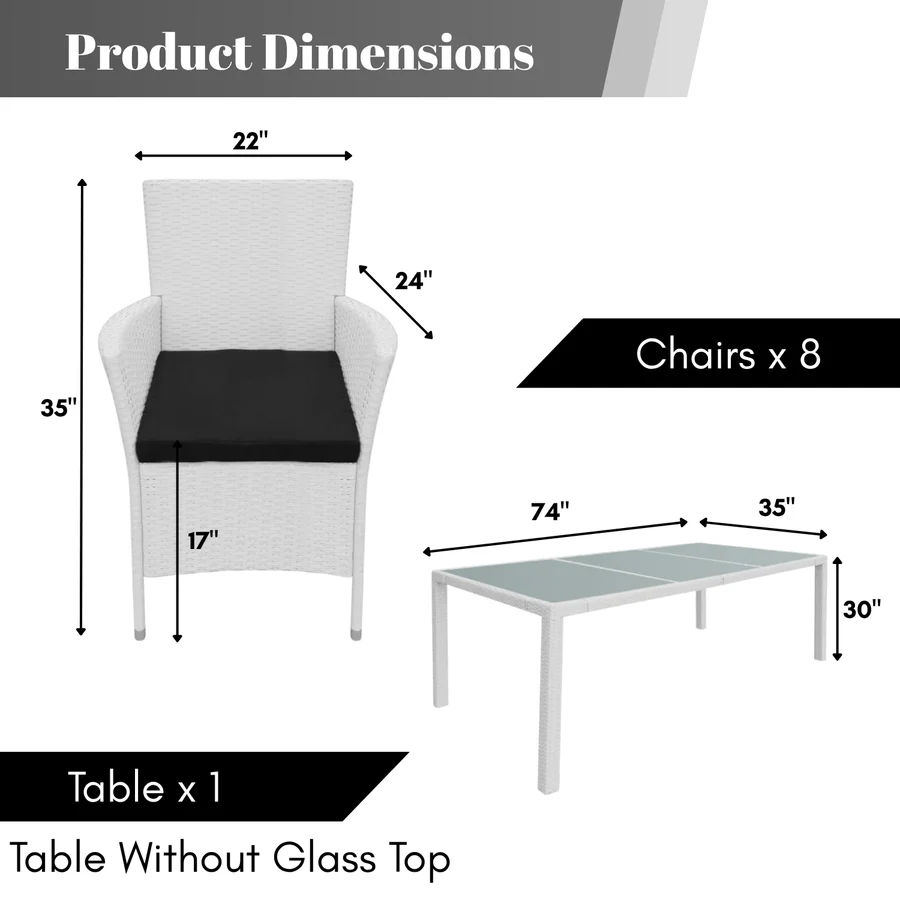 - 9-Piece Complete Dining Set : Includes 1 elegant dining table and 8 comfortable cushioned, perfect for entertaining family and friends in your patio, garden, or backyard.