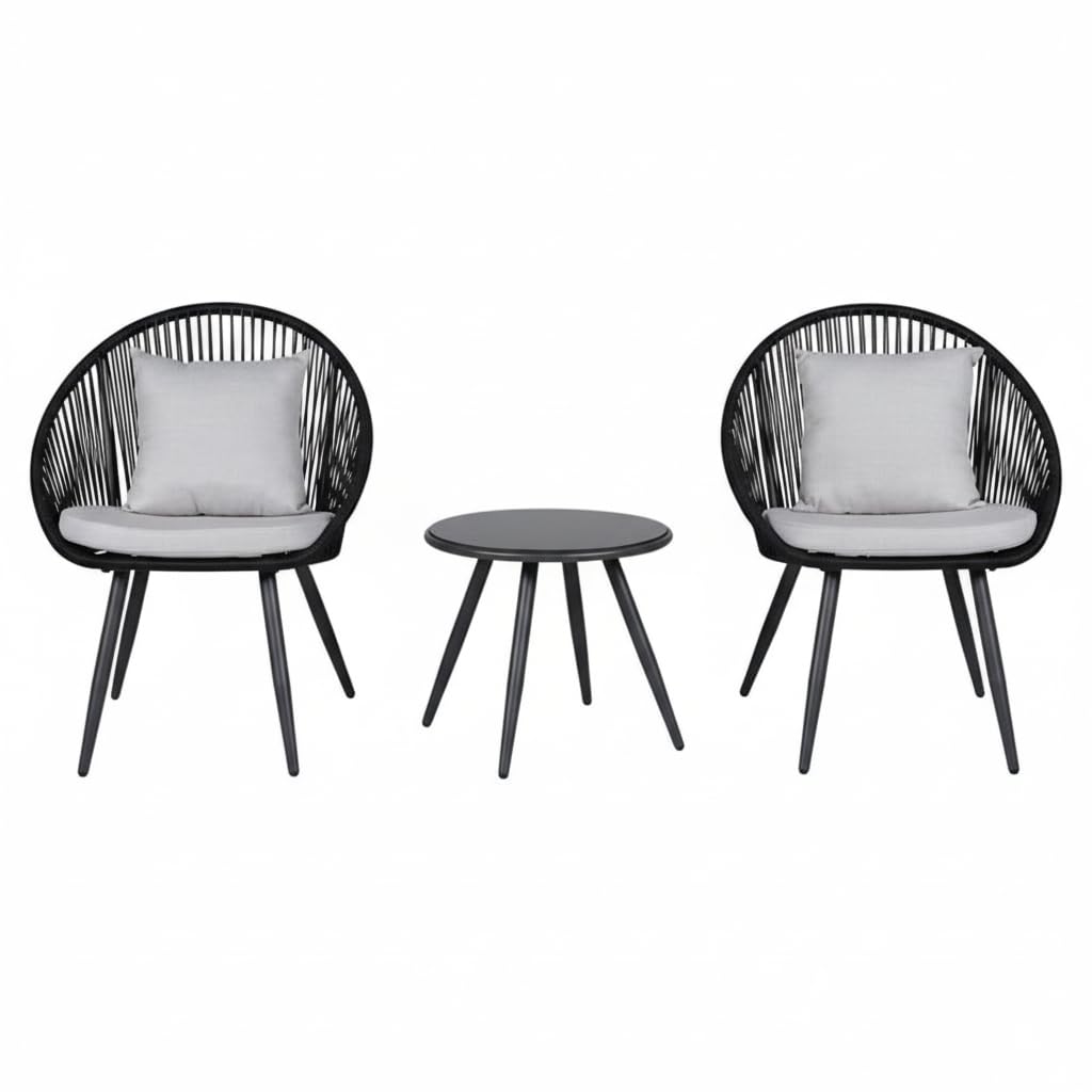 This set includes two comfortable rope chairs with cushions and one tempered glass-top side table. The versatile layout allows flexible placement in your patio, poolside, garden, courtyard, backyard, porch, or balcony, perfect for entertaining guests or enjoying quiet outdoor moments.