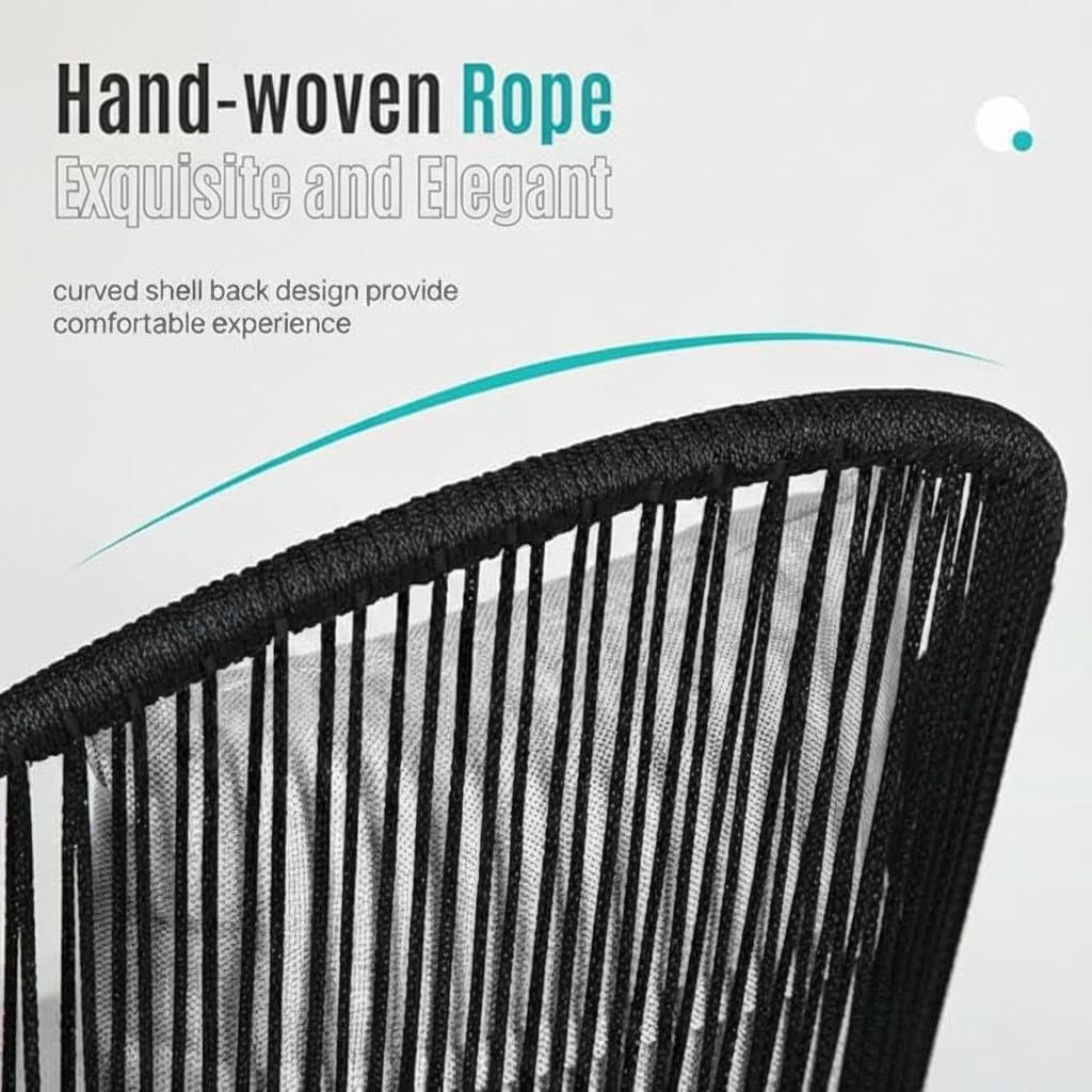 Built with a sturdy powder-coated iron frame and hand-woven PE rattan rope, this patio furniture set offers durability and long-lasting performance. The weather-resistant materials prevent rust and fading, making it a stylish and reliable addition to your patio, garden, deck, or poolside.