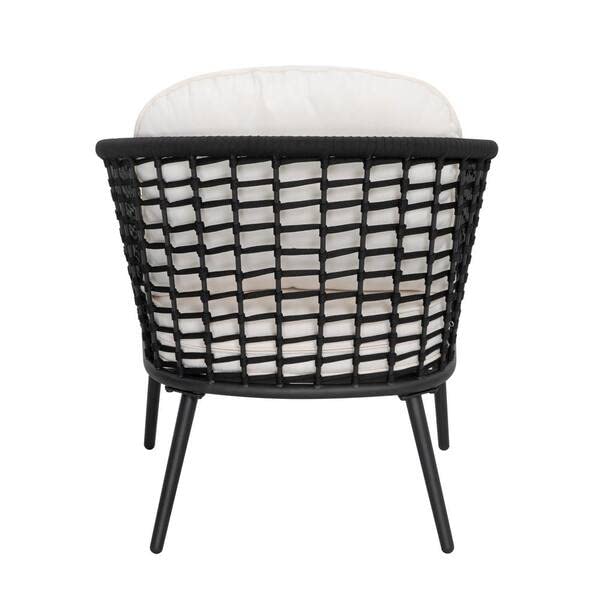 Made with all-weather woven rope and a rust-resistant powder-coated steel frame, this outdoor furniture set is designed to withstand sun, rain, and changing seasons while maintaining its elegant look.