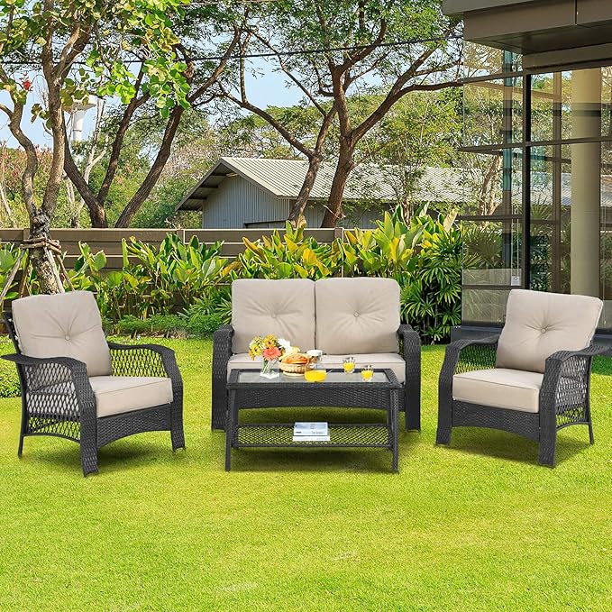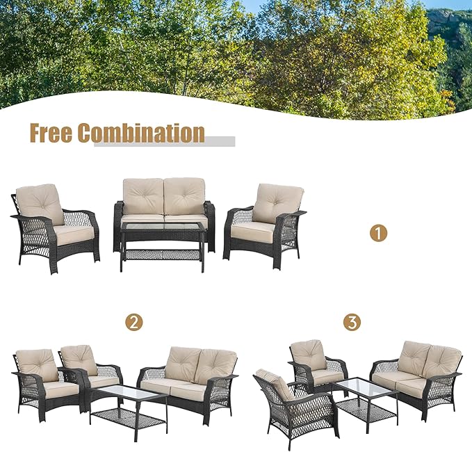 - Comfortable Seating : Sink into plush cushions on the sofa and chairs for a cozy and relaxing outdoor experience.