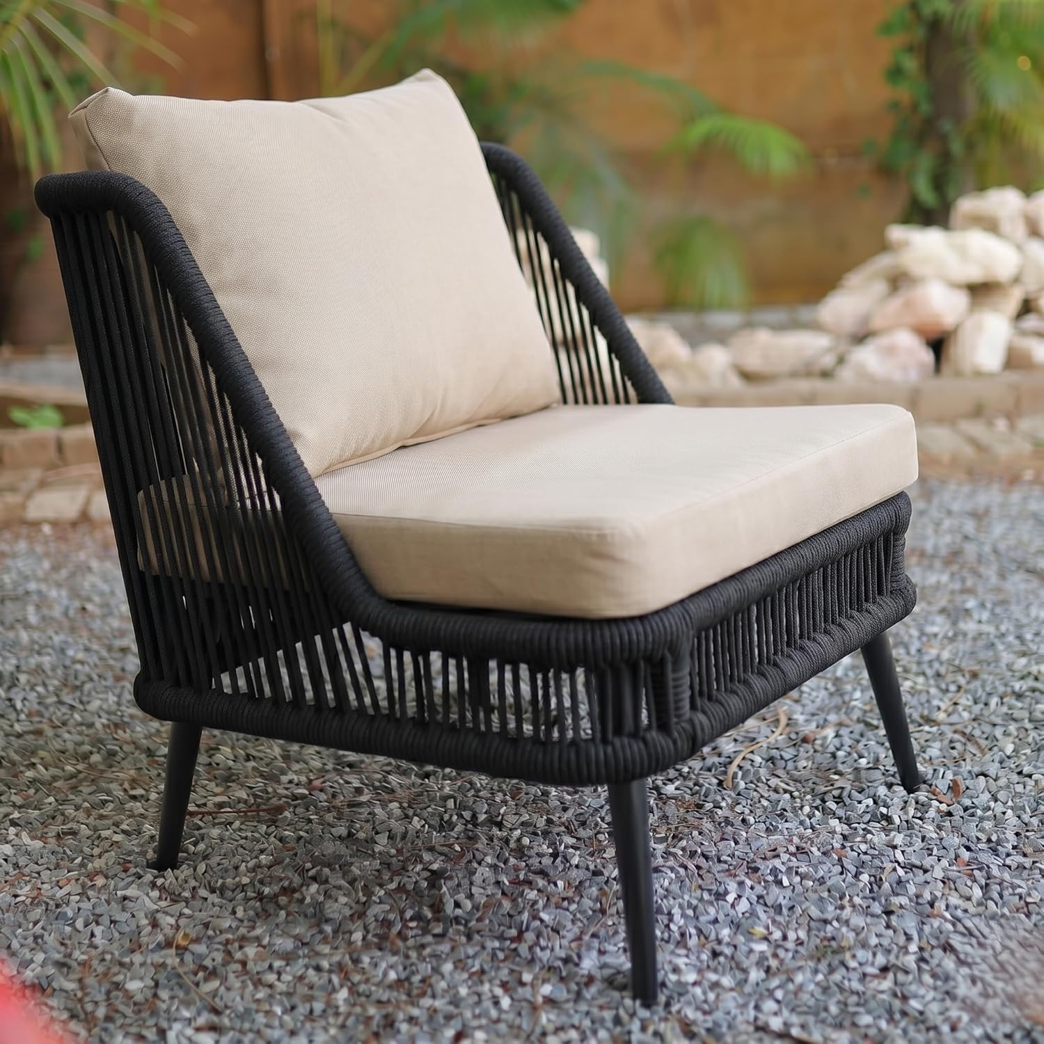 • Modern Rope Wicker Design – Crafted with stylish rope wicker in an elegant grey finish, this patio conversation set enhances your décor while blending perfectly with modern outdoor furniture themes.