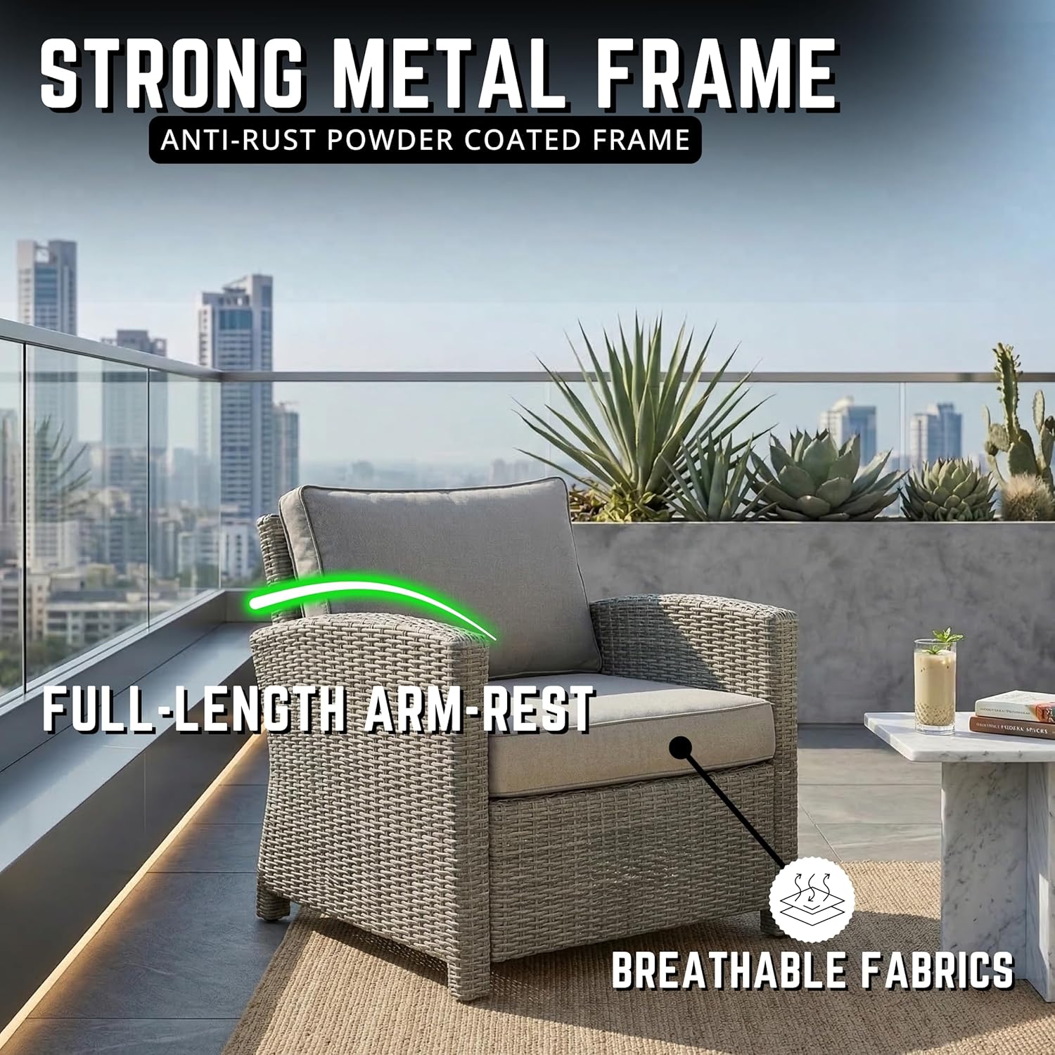 Redefine your outdoors with our modern handcrafted furniture — where strength meets style. Built on a MIG-welded metal frame, finished with weatherproof powder coating, and wrapped in UV-resistant rattan wicker for that earthy charm. Sink into plush foam cushions covered in premium raxine or fabric, made for comfort and built for the outdoors. Whether it’s a sunny brunch or a starry evening, this piece is made to impress — and last.