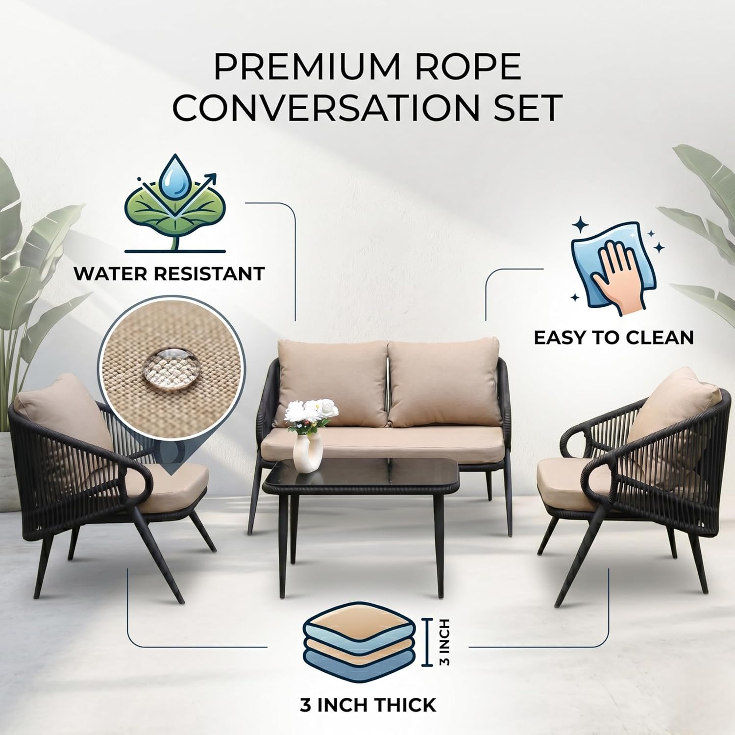 Imagine stepping onto your balcony, garden, or poolside and sinking into a sofa that feels as good as it looks. That’s exactly what the LOCCUS 4-Seater Rope Outdoor Sofa Conversation Set delivers — premium hotel-grade outdoor seating, built specifically for Indian homes and Indian weather. From blazing Rajasthan summers to heavy Mumbai monsoons to humid Chennai coastal air — this set is engineered to handle it all without fading, rusting, or losing shape. The warm Beige & Brown colour palette brings a natural, earthy elegance that transforms any outdoor corner into a sophisticated living space. At its core is a heavy-duty powder-coated iron frame that supports up to 130 kg per seat — no wobbling, no bending, no compromise. Every strand of rope is precision hand-woven using UV-stabilised, anti-corrosion outdoor rope that stays taut, smooth, and vibrant through years of outdoor use. Unlike cheaper alternatives, the open-weave design allows natural airflow — keeping the seating cool and breathable even under direct afternoon sun. The 3-inch thick high-density foam cushions are wrapped in all-weather water-resistant fabric — soft on the skin, tough against rain. The zip-off covers are fully removable and machine washable, so your sofa always looks fresh with zero effort. No more dragging cushions indoors every time the clouds roll in. Completing the set is a tempered glass top center table — scratch-resistant, shatter-safe, and styled to impress. Large enough for a chai tray, snack spread, or your evening drinks — it ties the whole setup together beautifully. Whether you’re hosting a Sunday family gathering, enjoying a quiet morning coffee, or entertaining guests under the stars — the LOCCUS Rope Sofa Set turns your outdoor space into your favourite room in the house.