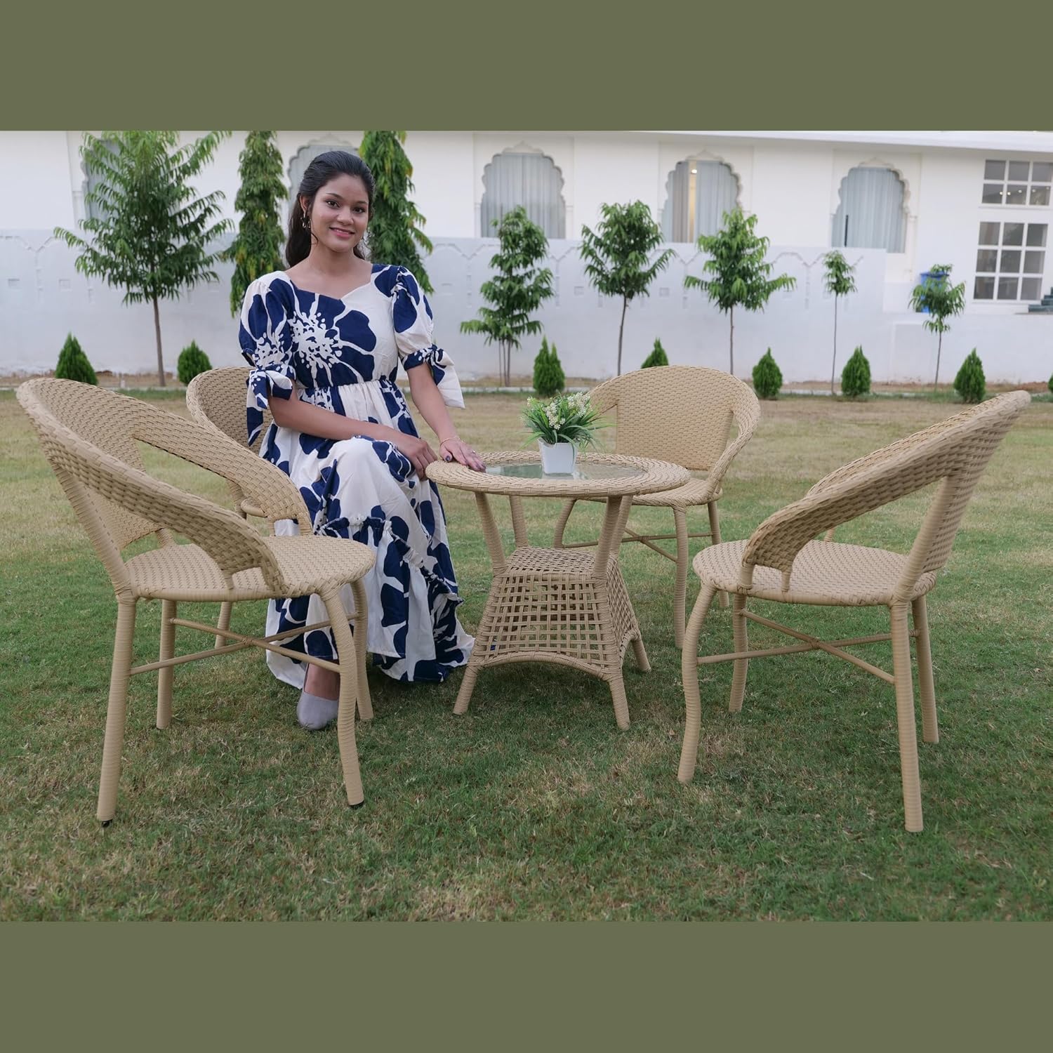 Built with a powder-coated iron frame and high-quality HDPE rattan wicker, this furniture set offers superior strength, stability, and a high load-bearing capacity for long-term use.