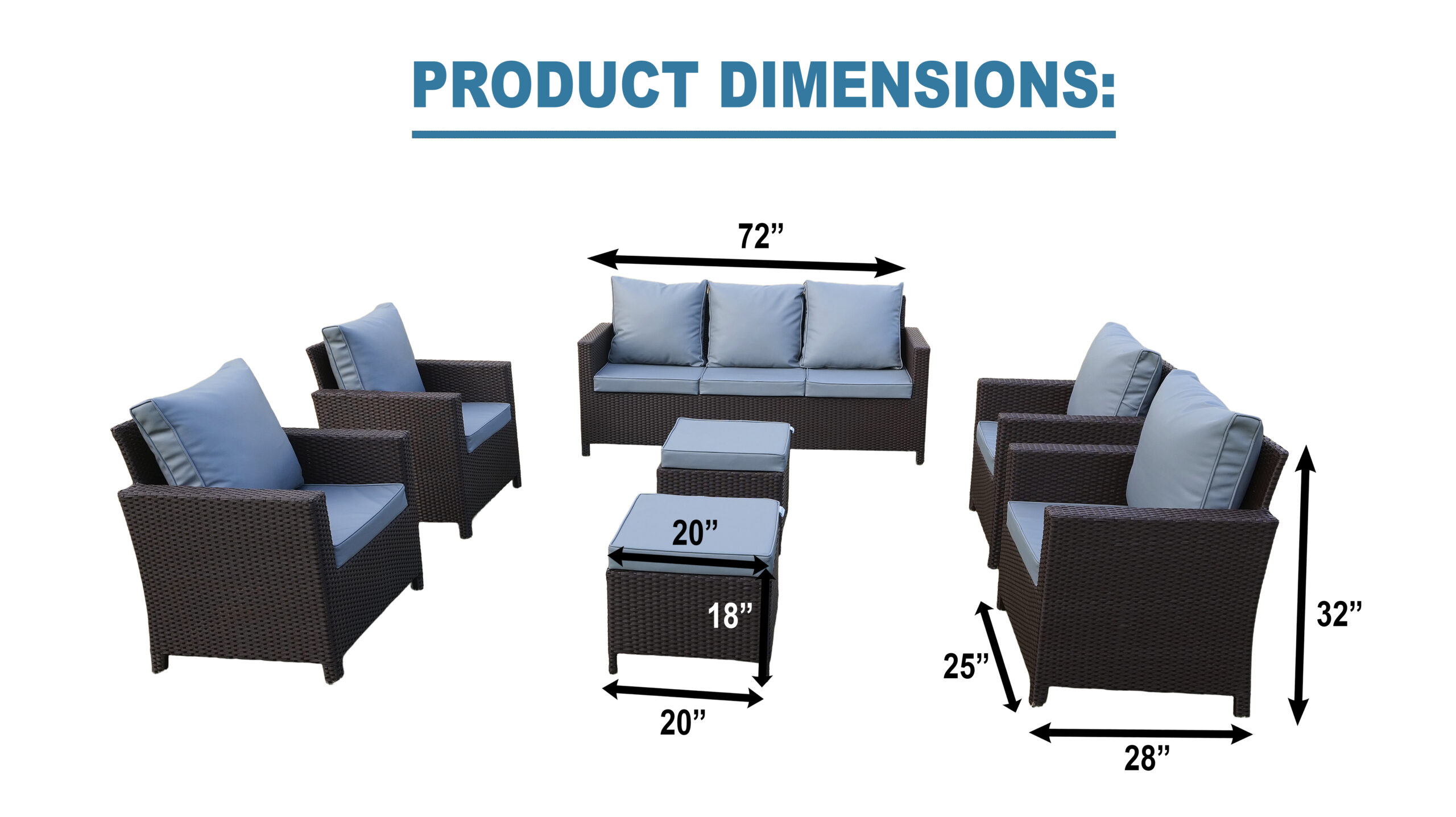 - Contemporary Style: Featuring a trendy appearance and practical design, this will be an ideal hideaway for relaxing and enjoying your leisure time near the swimming pool, in your garden, on your patio, etc. With this wicker sofa set, you can enjoy leisure time with your friends or family.