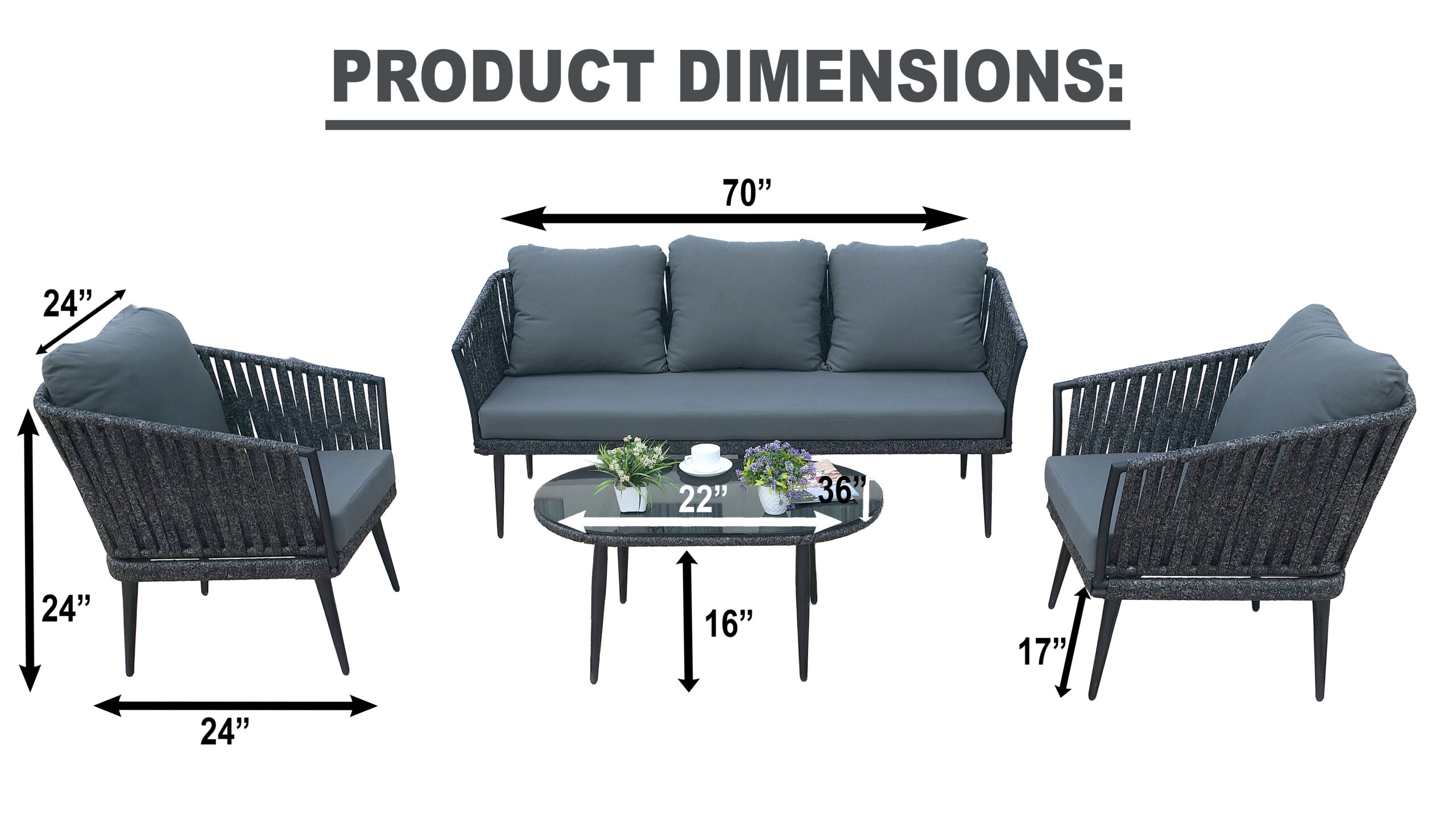 - Cushion Color: Dark Grey