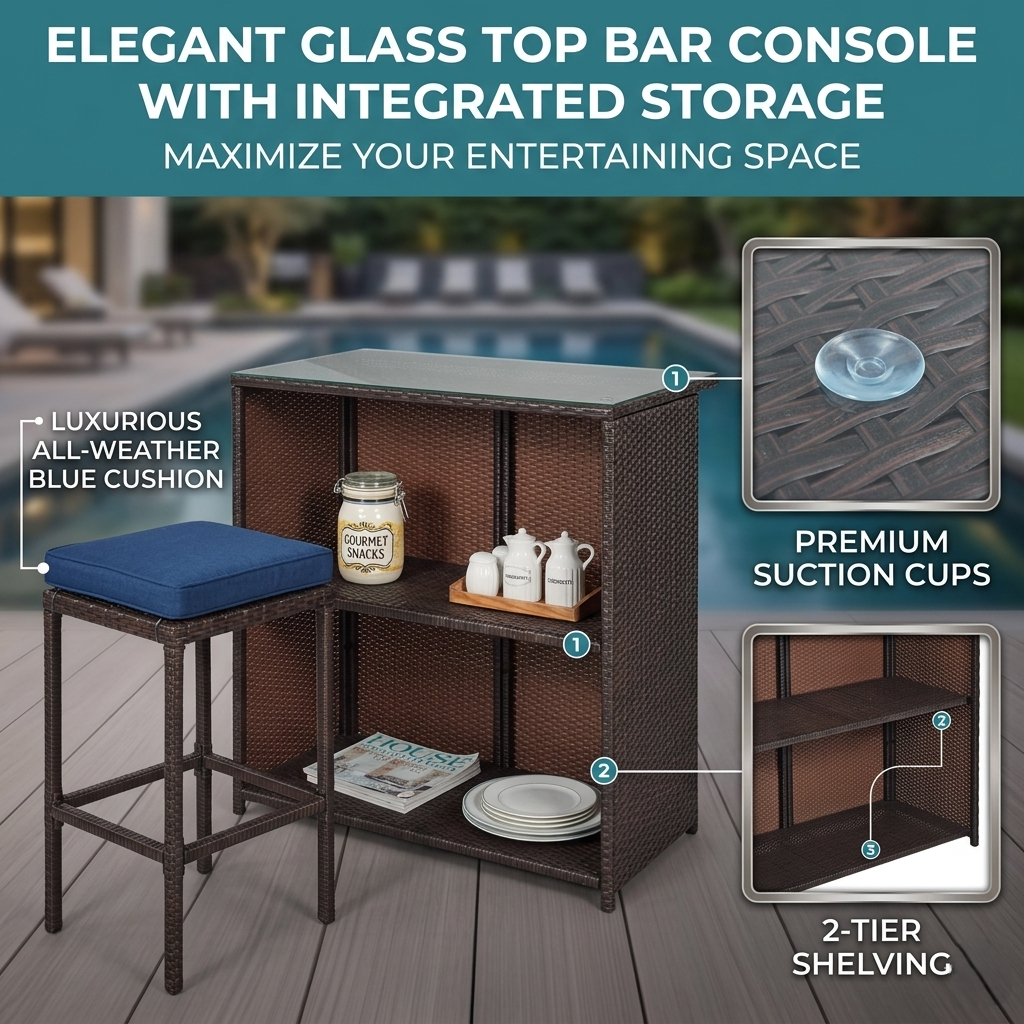Lightweight yet sturdy, this bar set is easy to reposition across your patio, garden, or backyard. Its space-saving design makes it ideal for smaller areas while still offering a premium outdoor experience.