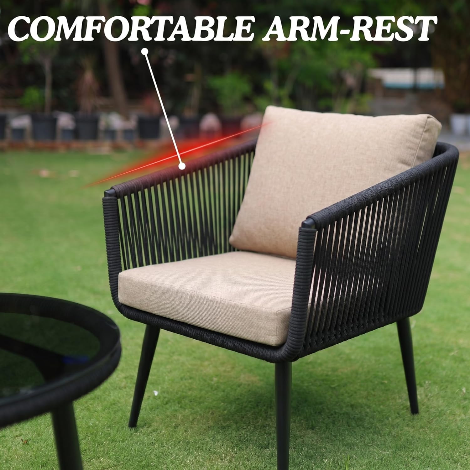 • Premium Breathable Rope Weaving: Crafted with high-quality UV-resistant rope, the ergonomic rope seating provides excellent airflow, comfort, and modern aesthetics. Ideal for outdoor seating, it resists fading and withstands all weather conditions.