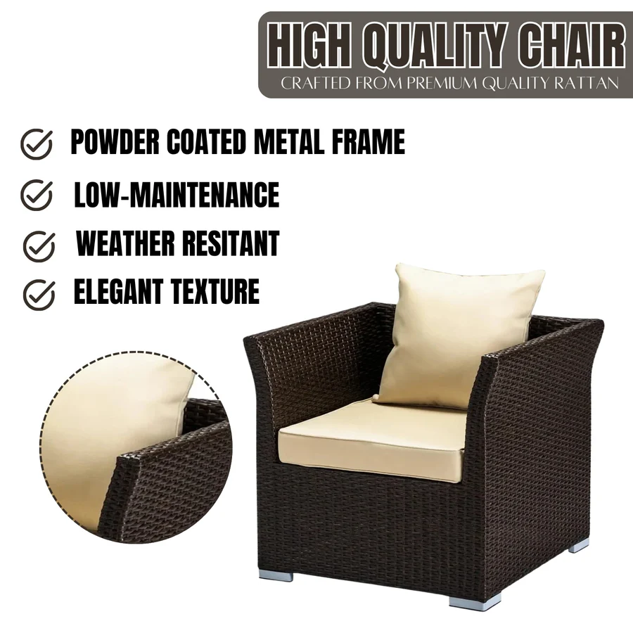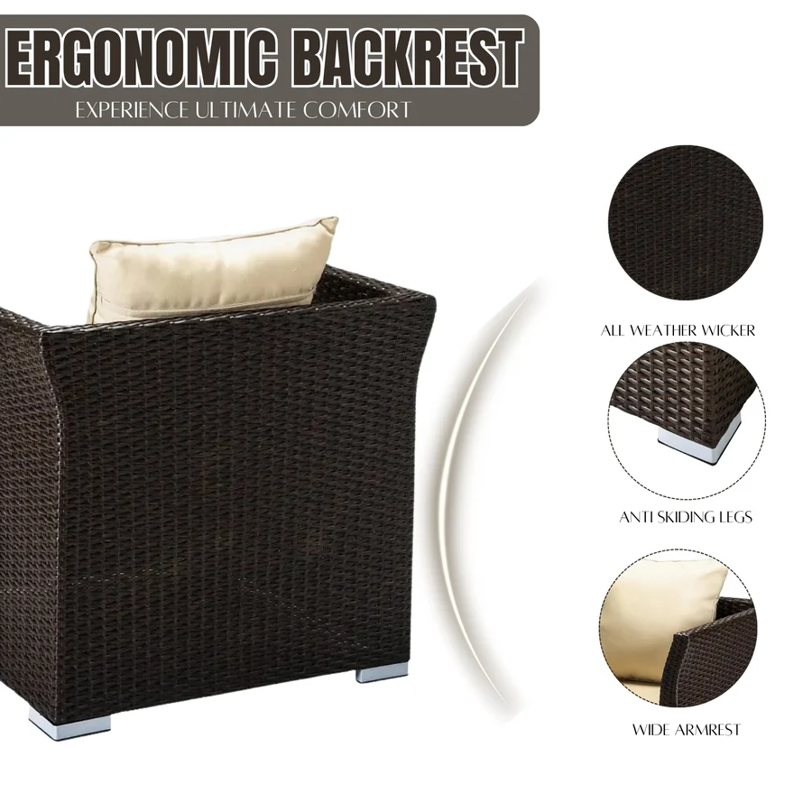 • Stylish Outdoor Aesthetic : Elegant contrast of dark brown wicker and cream cushions complements any patio or garden décor.