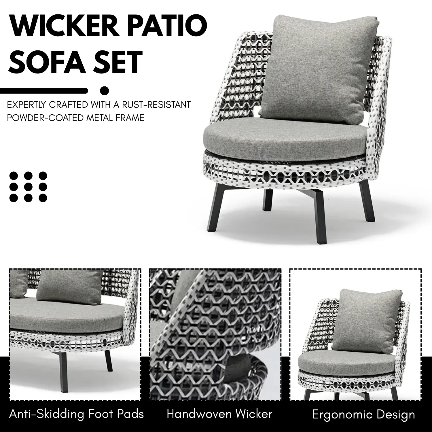 Redefine your outdoors with our modern handcrafted furniture — where strength meets style. Built on a MIG-welded metal frame, finished with weatherproof powder coating, and wrapped in UV-resistant rattan wicker for that earthy charm. Sink into plush foam cushions covered in premium raxine or fabric, made for comfort and built for the outdoors. Whether it’s a sunny brunch or a starry evening, this piece is made to impress — and last.