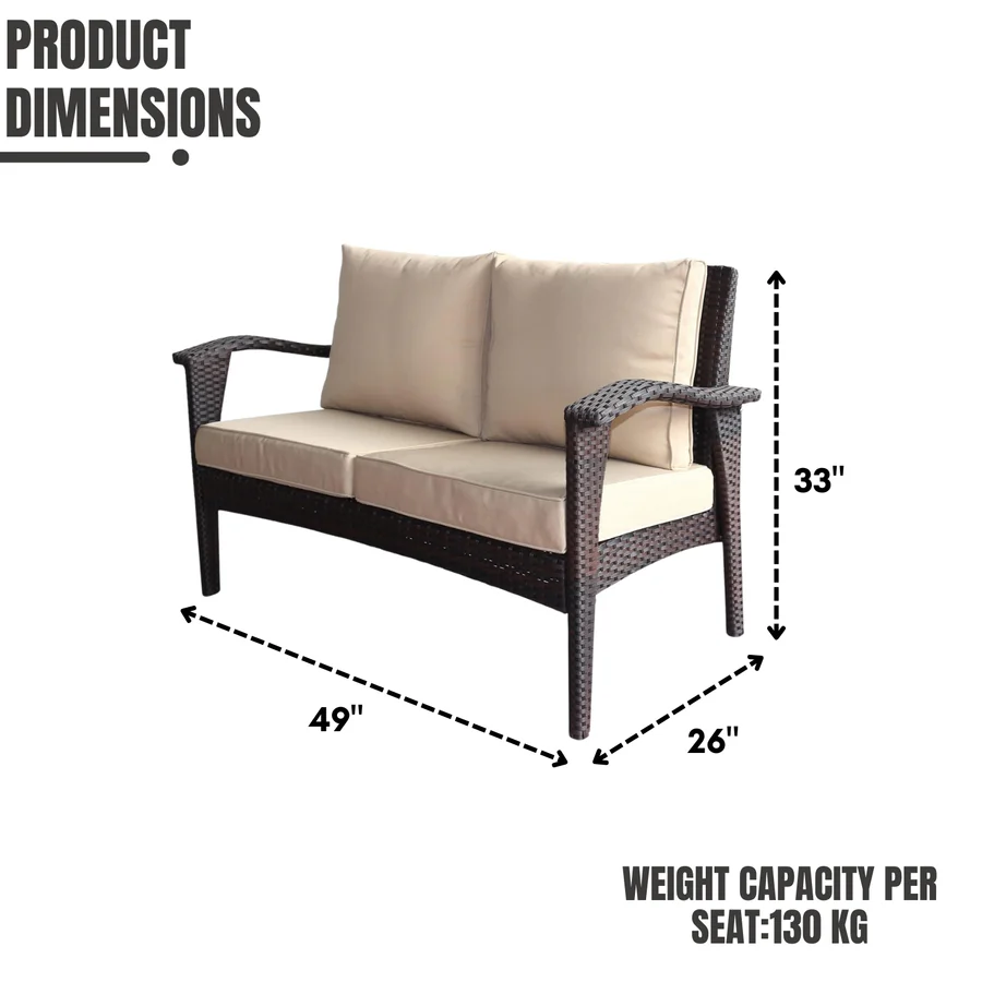 - All-Weather Wicker Construction : Handwoven with high-quality synthetic rattan, this loveseat is designed to withstand rain, sun, and humidity ideal for year-round outdoor use.