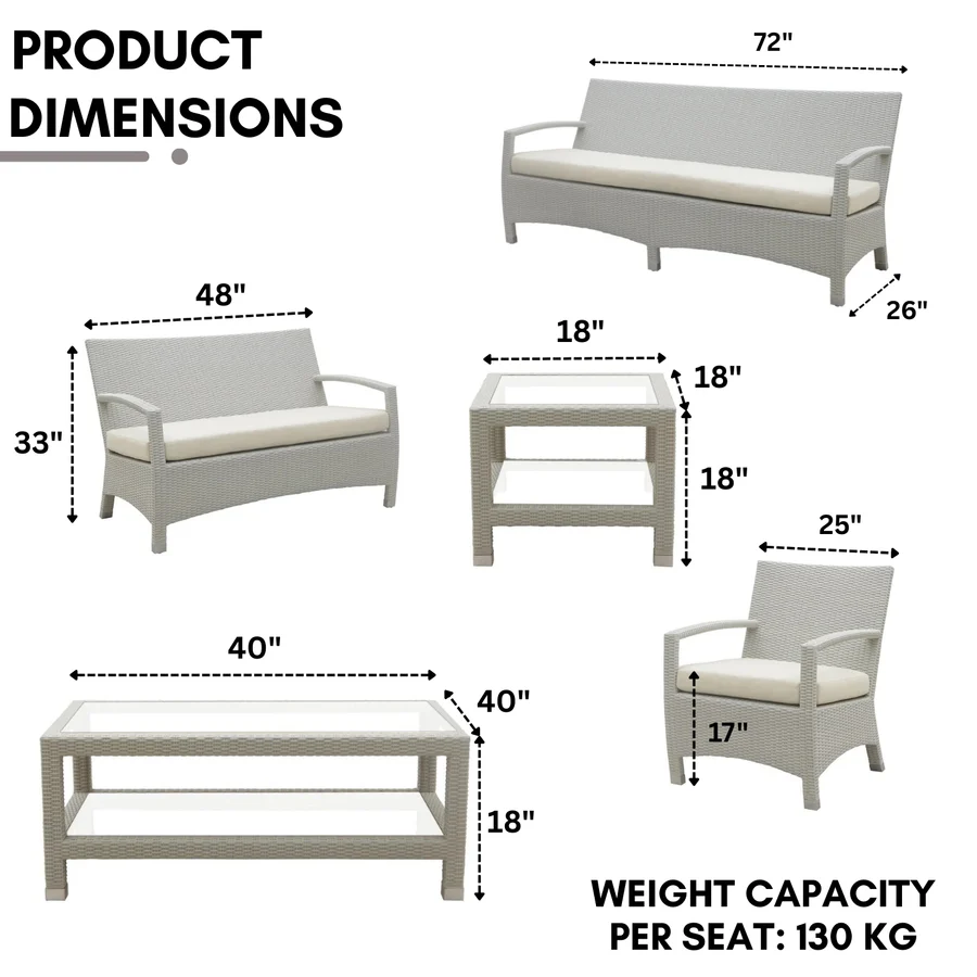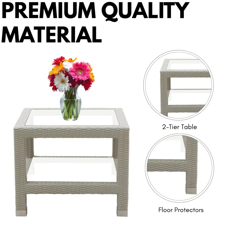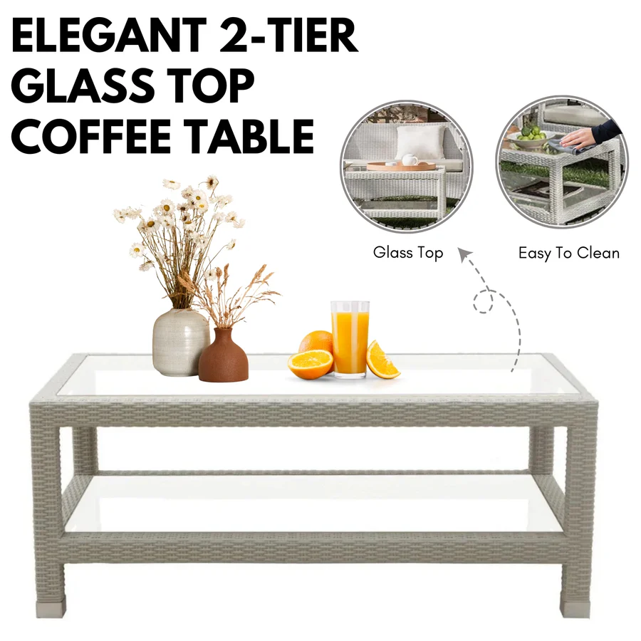 - Multi-Functional Center & Side Tables : Includes a stylish 2-tier glass-top center table and a convenient side table perfect for serving snacks, drinks, or decorative accents whether on a balcony, patio, or living room.