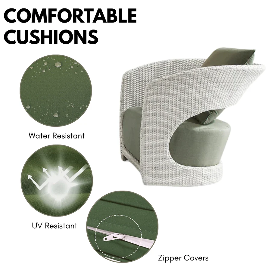 - Premium White Rattan Wicker : Handwoven with high-quality, UV-resistant rattan that withstands sun, rain, and outdoor conditions.
