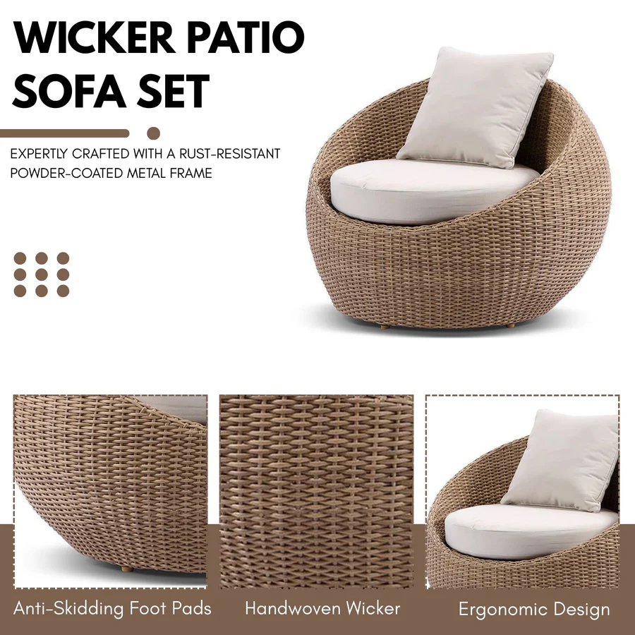 - All-Weather HDPE Wicker : Handwoven UV-resistant wicker offers long-lasting performance in sun, rain, and humidity without cracking or fading.